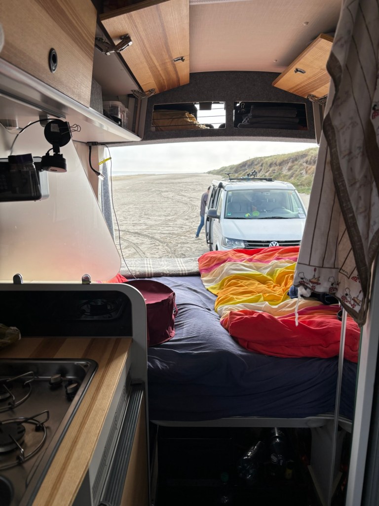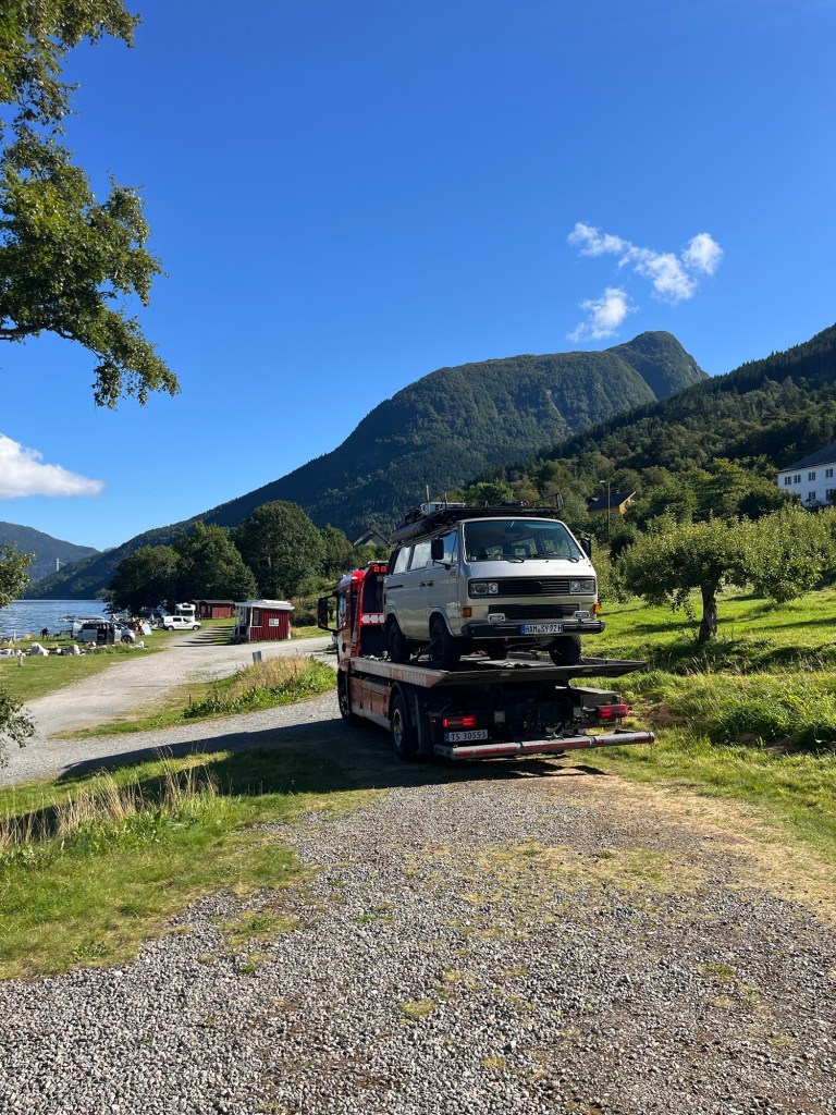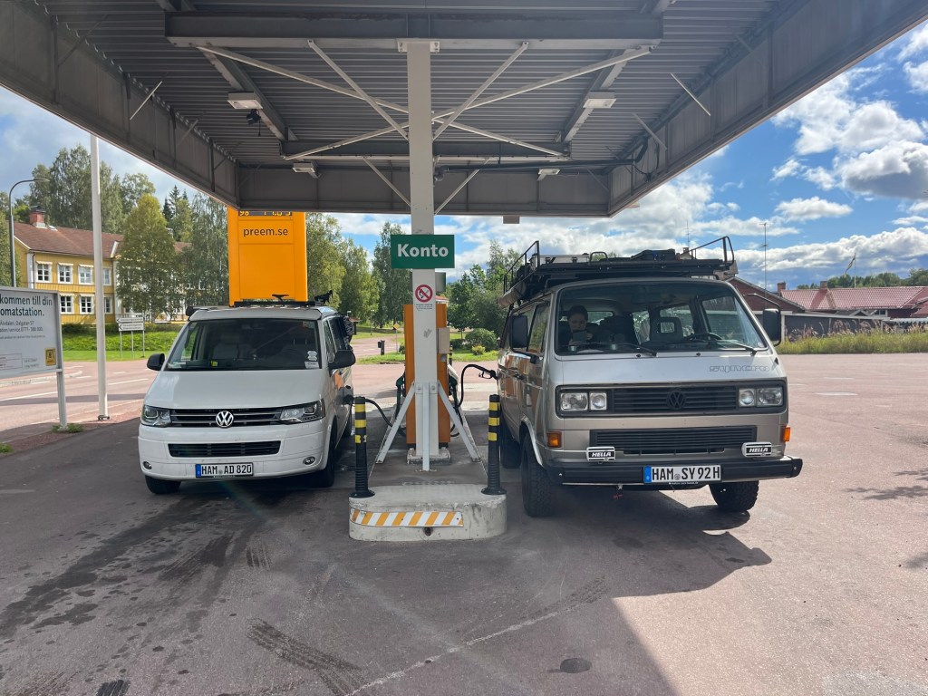 Die Fahrt verlief ganz entspannt. Es war zwar zwischendurch viel los und eine gewisse ungewohnte Hektik im Verkehr, die man aus Skandinavien überhaupt nicht kennt. Auf einem Parkplatz quatschte ich fast eine halbe Stunde mit einem anderen Bullifahrer, immer wieder cool, was man unterwegs für Bekanntschaften macht.