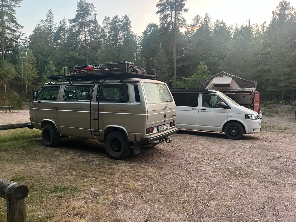 Der angekündigte Regen zog heute Morgen vorbei, sodass der Tag wieder mit viel Sonne startete. Wir packten alle Sachen zusammen und machten die Bullis fertig für die Abfahrt. Anschließend ging’s los. In Växjö machten wir einmal Pause bei MAX, aßen Burger und fuhren dann weiter Richtung Vetlanda. Dort haben wir eingekauft und Matthias und Nelly haben ein bisschen Kleidung geshoppt.