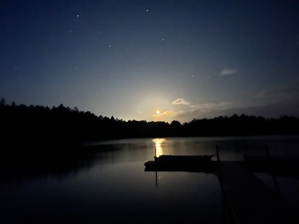 Die letzten Kilometer für heute fuhren wir durch Wälder, sehr staubige Schotterstraßen und erreichten dann am frühen Abend unseren nächtlichen Schlafplatz, einen kleinen Womo-Stellplatz direkt am See. Nach dem Abendessen sind wir eine Runde spazieren gegangen, haben auch versucht unsere Drachen steigen zu lassen, jedoch war der Wind leider zu schwach und drehte.