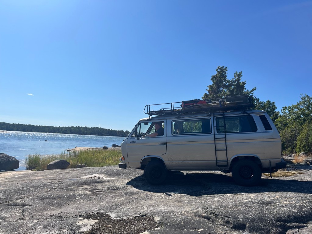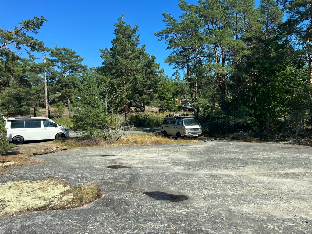 Dort haben wir ein paar coole Fotos vom T3 auf den Schären gemacht. Leider darf man hier jedoch nicht stehen bzw. ist dies direkt neben einem Campingplatz… Für den California hat’s mit den Höhenunterschieden nicht so funktioniert weshalb wir es gar nicht erst probiert haben.