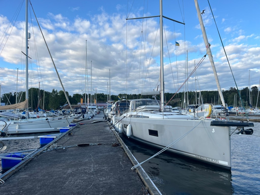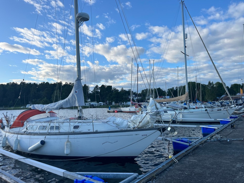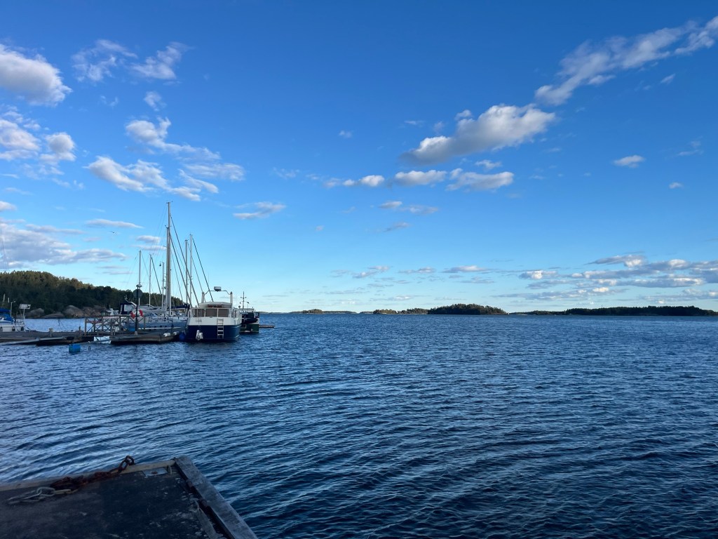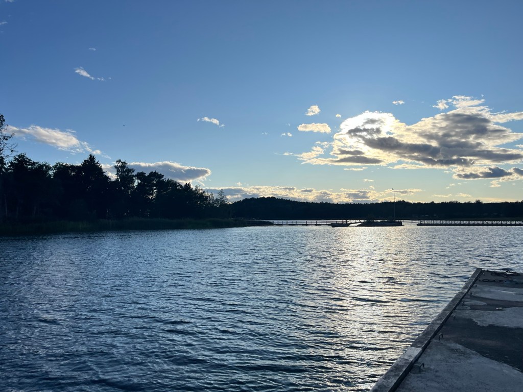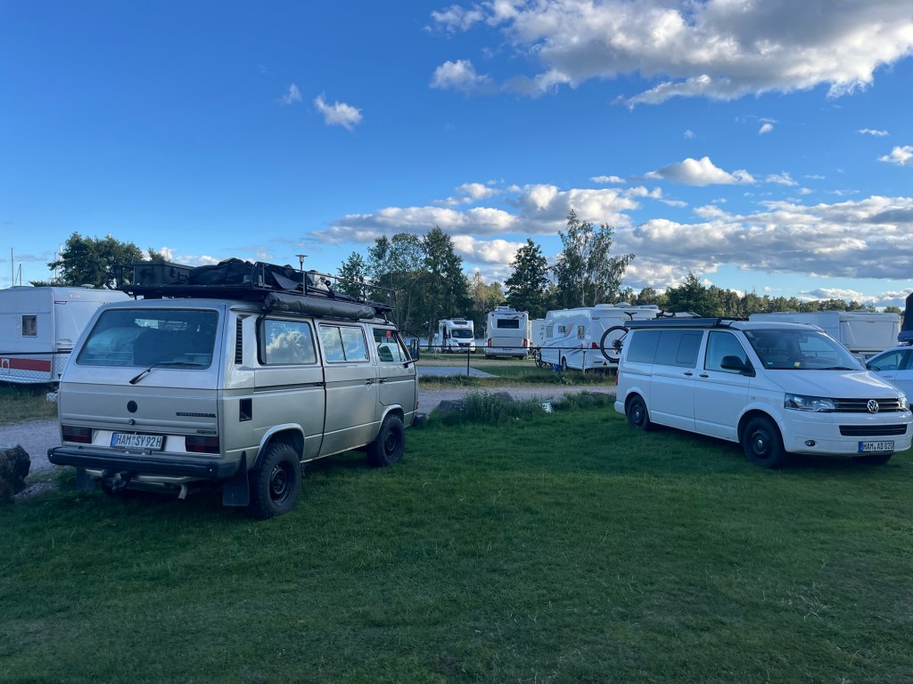 Da wir noch fast 2 Stunden bis Stockholm und irgendwie keine Lust mehr zu fahren hatten, suchten wir spontan einen anderen Campingplatz raus. Nach vielen Kurven und einigen Hoch-und Runter erreichten wir einen kleinen Platz direkt am Wasser neben einem Yachthafen. Was eine Fahrt heute.