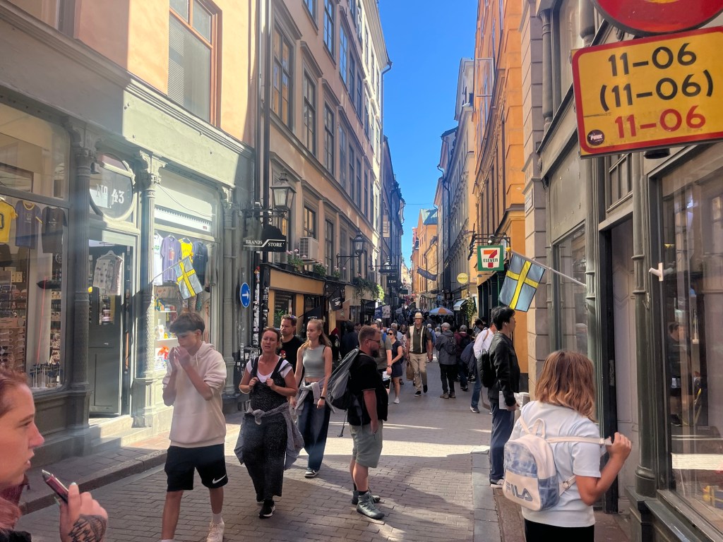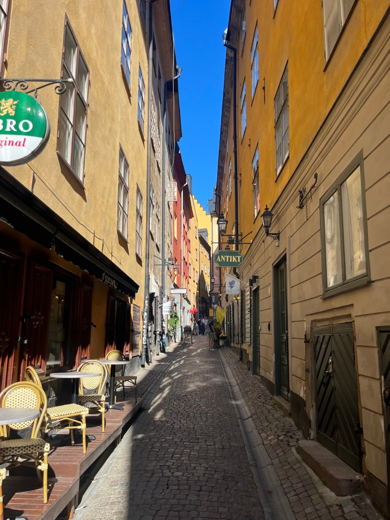 Wir sind mit einem Uber in die Stadt gefahren. Für uns drei war es sogar günstiger als mit den öffentlichen Verkehrsmitteln zu fahren, außerdem deutlich bequemer und schneller. Wir liefen durch den Stadtteil Gambla Stan, dem Kern der Stadt mit vielen verwinkelten Gassen.