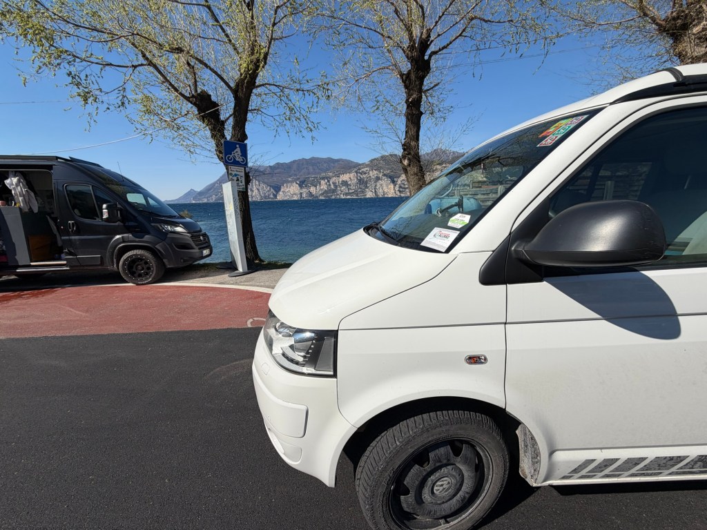 Irgendwo am Ostufer des Sees machte die Bremse beim Bremsen ganz furchtbare Geräusche, so als würde Metall auf Metall kratzen. Ich dachte kurz, dass der Wagen auseinander fällt. Also raus auf einen kleinen Parkplatz und einmal gucken. Feststellen konnte ich aber nichts. Beim Rückwärtsfahren kam dann aber die Erleichterung. Das Geräusch war schlagartig weg. Wahrscheinlich nur ein kleines Steinchen…