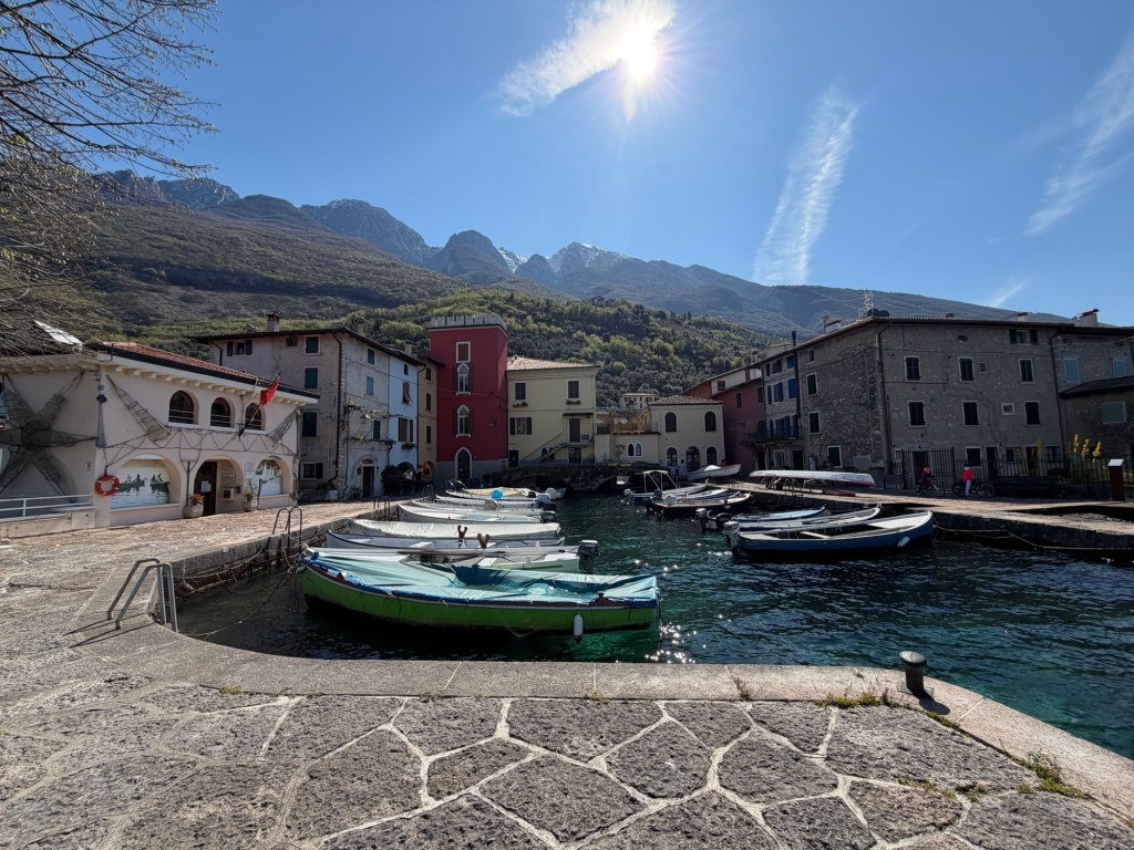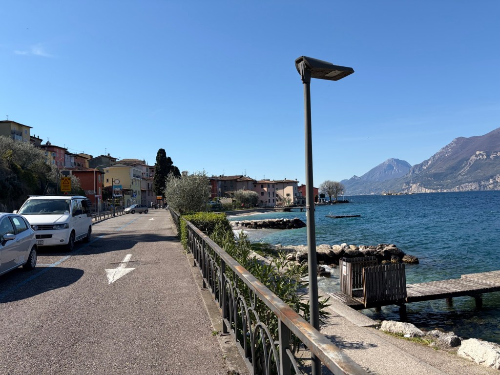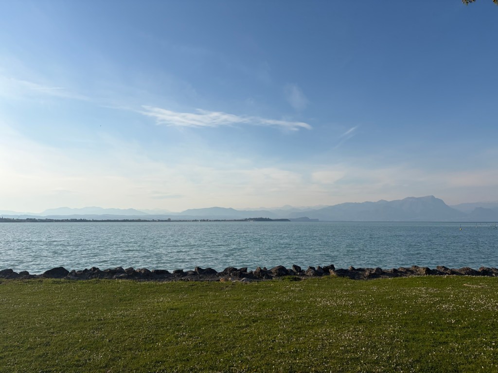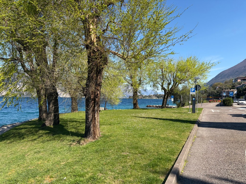 Anschließend ging’s kilometerlang nur bergab bis ins Tal. Ich stand heute Nacht tatsächlich auf knapp 1600m Höhe. Ursprünglich war der Plan, zu einem kleinen See zu fahren. Als ich jedoch an der Abzweigung zum Gardasee war und das Wetter wirklich top heute war, entschied ich mich, doch zum Gardasee zu fahren.