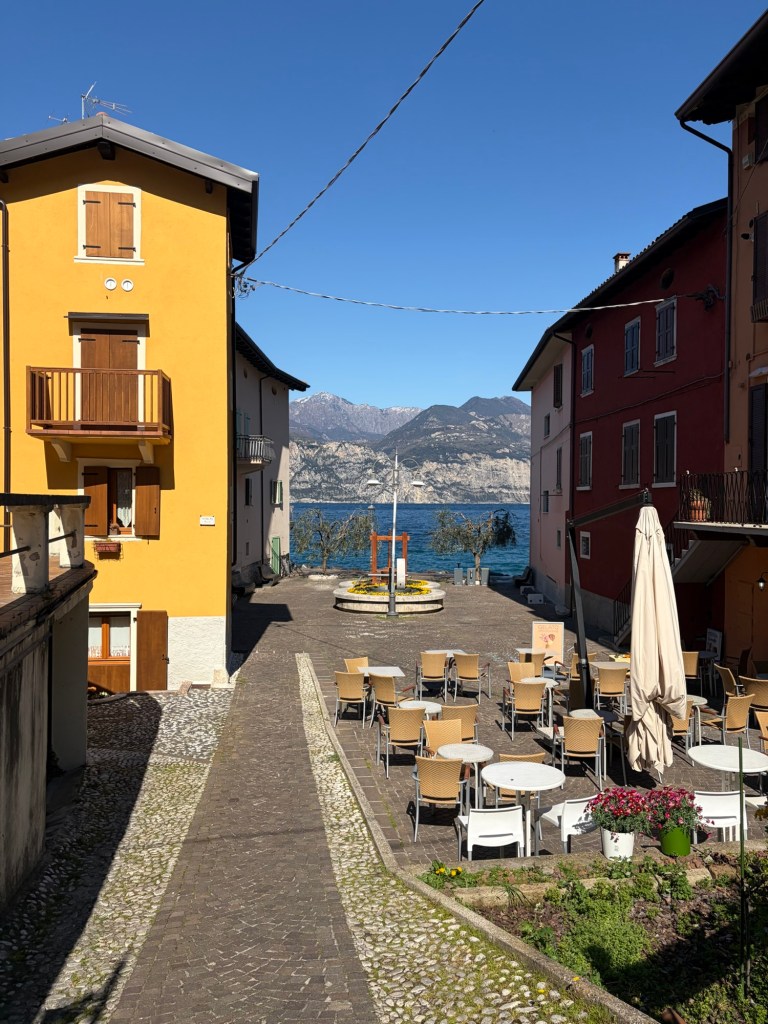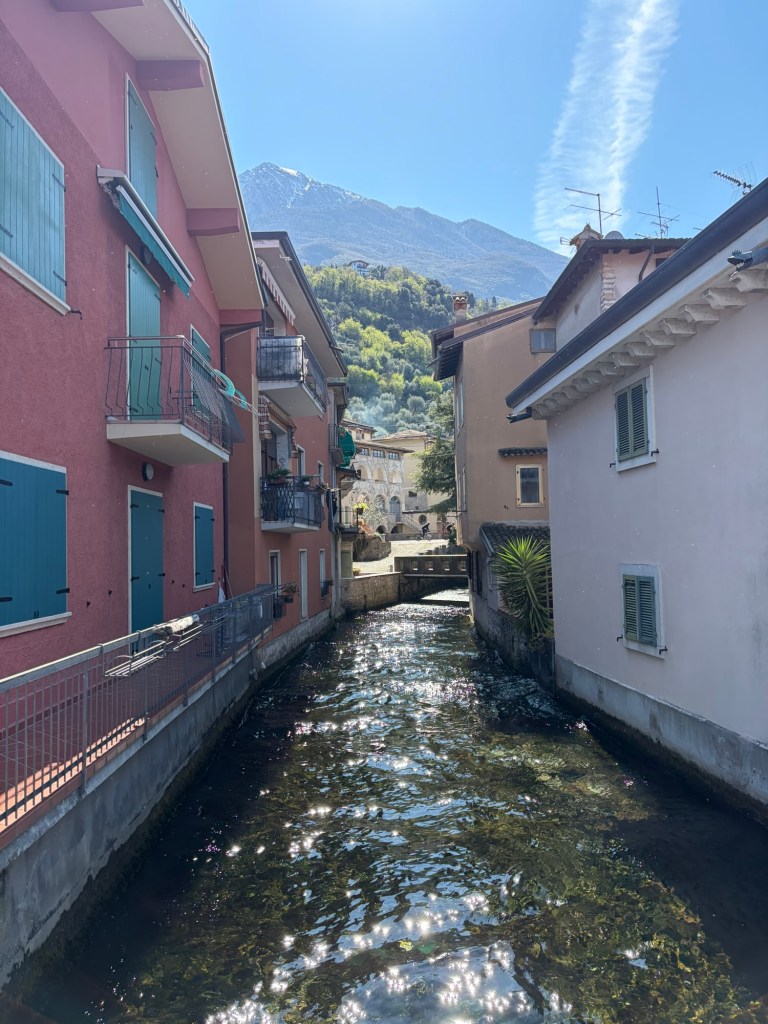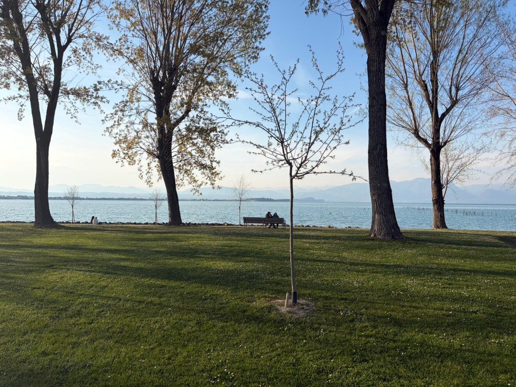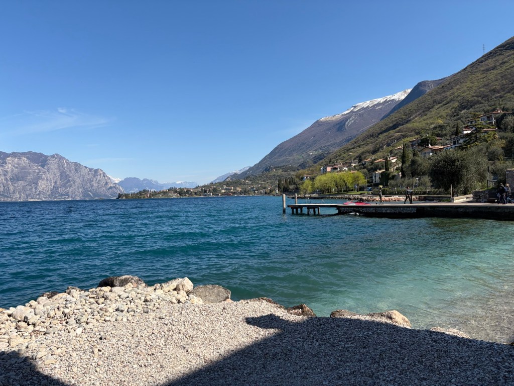 Anschließend ging’s kilometerlang nur bergab bis ins Tal. Ich stand heute Nacht tatsächlich auf knapp 1600m Höhe. Ursprünglich war der Plan, zu einem kleinen See zu fahren. Als ich jedoch an der Abzweigung zum Gardasee war und das Wetter wirklich top heute war, entschied ich mich, doch zum Gardasee zu fahren.