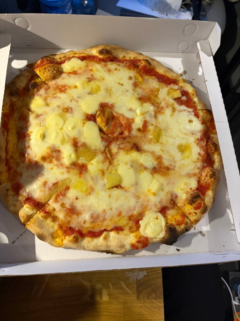 Zum Abend hin ging ich noch eine Runde am Wasser spazieren und genoss die Sonnenuntergangsstimmung. Zurück am Campingplatz bestellte ich mir in der platzeigenen Pizzeria eine Pizza 4 Formaggi. Eine Käsesorte sah aus wie Ananas und hat irgendwie nicht geschmeckt. Keine Ahnung was das war. Aber sonst war die Pizza echt top.