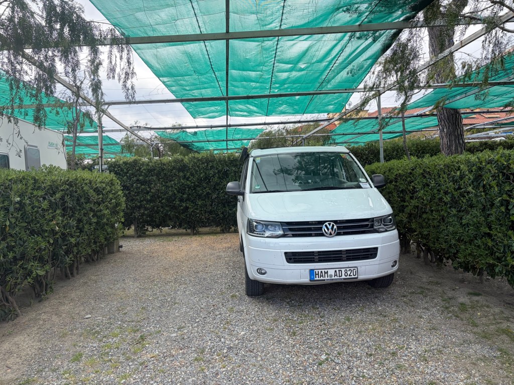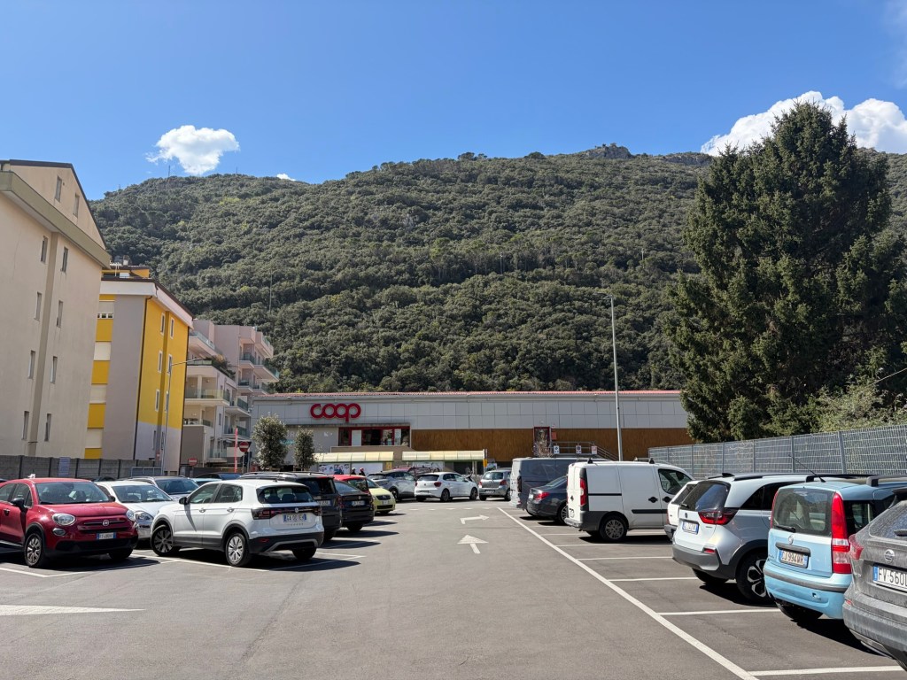 Gestern Abend kam auch noch ein Camper aus Gießen vorbei, der ebenfalls alleine unterwegs ist. Wir quatschten auch noch lange und als Technik-Spielkinder kann man ja wirklich ewig über die Technik in den Campern quatschen. Anschließend machte ich mich wieder auf den Weg ins Tal. Ganz schön steil und echt viele Kurven. Ich ging erst einmal einkaufen. Man muss sich da erst mal zurecht finden neben Bergen von eingeschweißten Croissants, Pizzamehl und anderen typisch italienischen Produkten. Am Ende habe ich aber alle gefunden, was ich brauchte.