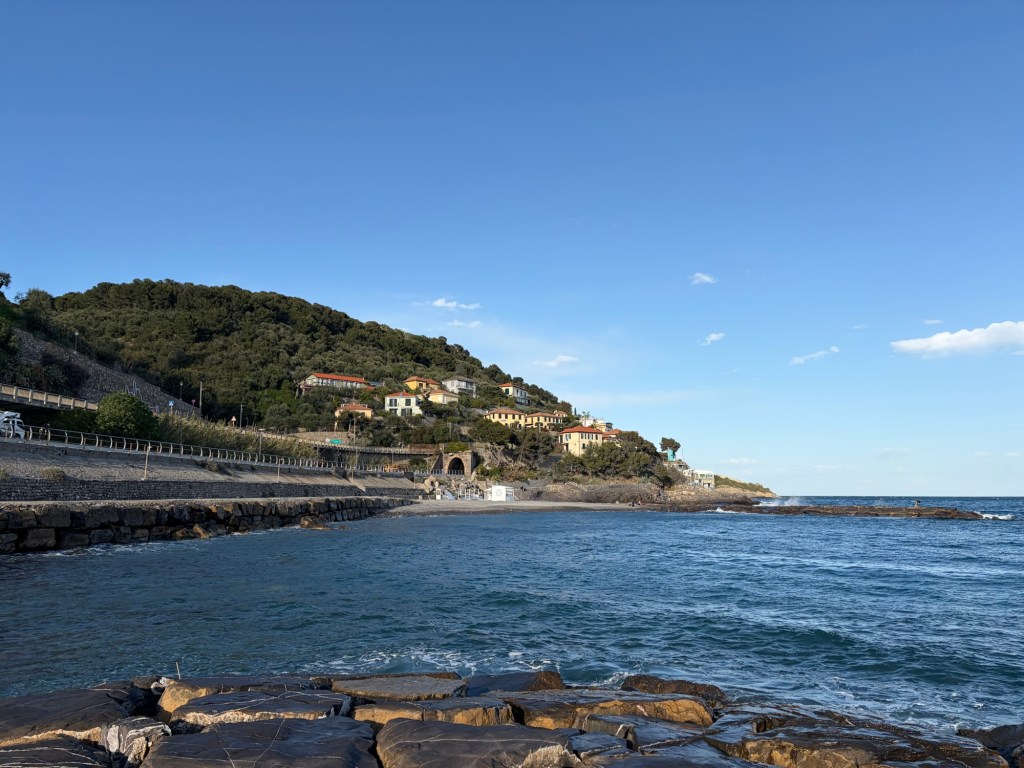 Heute fuhr ich komplett ohne Autobahnen direkt an der Küste entlang. Einfach traumhaft. Die Kombination aus Kurven, Hoch und runter, kleinen Örtchen und dem Meer machen das Fahren hier wirklich sehr sehr cool. Man fährt zwar echt wenig Kilometer in einer Stunde, aber hier ist halt wirklich der Weg das Ziel.