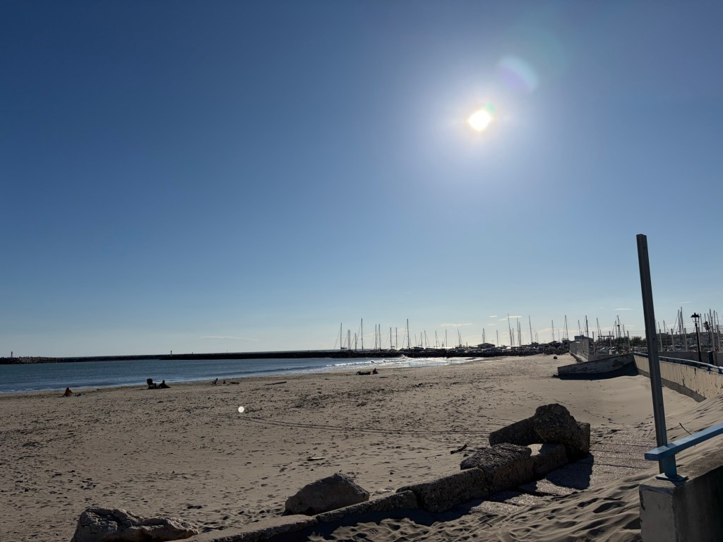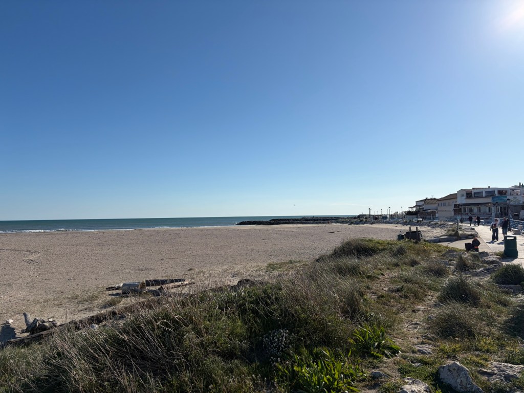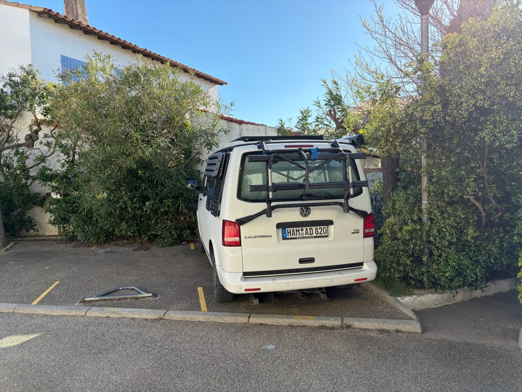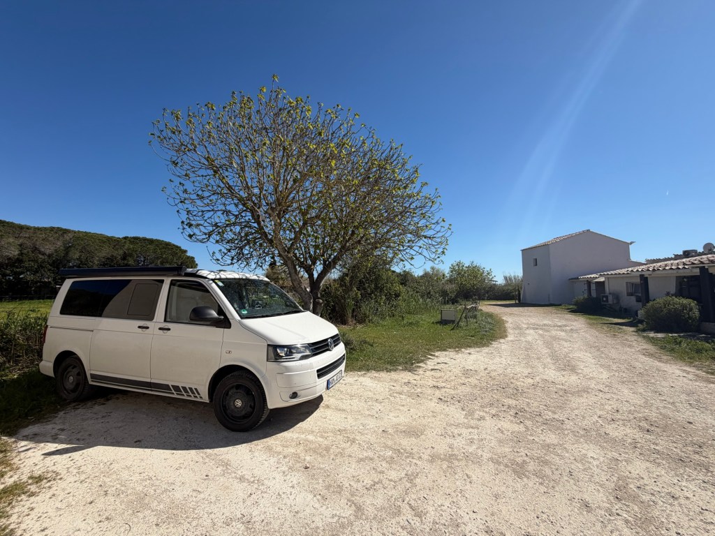 Wir frühstückten noch gemeinsam, die vier bzw. mit Hund fünf starteten dann eine Fahrradtour und ich checkte um kurz vor 12 Uhr aus. Mein heutiges Ziel war Saintes-Maries-de-la-Mer in der Camargue. Hier besuche ich Cécile und Lucas, die vor einigen Jahren hierhin ausgewandert sind. Auf meiner Tour letztes Jahr bin ich auch hier vorbeigefahren, allerdings damals vom Südwesten kommend, diesmal von Osten.