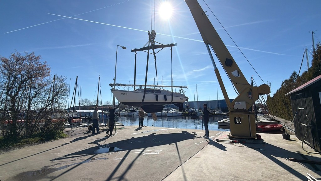 Immer wieder cool, wenn das Boot so in der Luft schwebt und dann ins Wasser gesetzt wird. Alles hat super geklappt, der Mast war auch schnell gestellt, sodass wir nachmittags den ersten Schlag Segeln konnten.