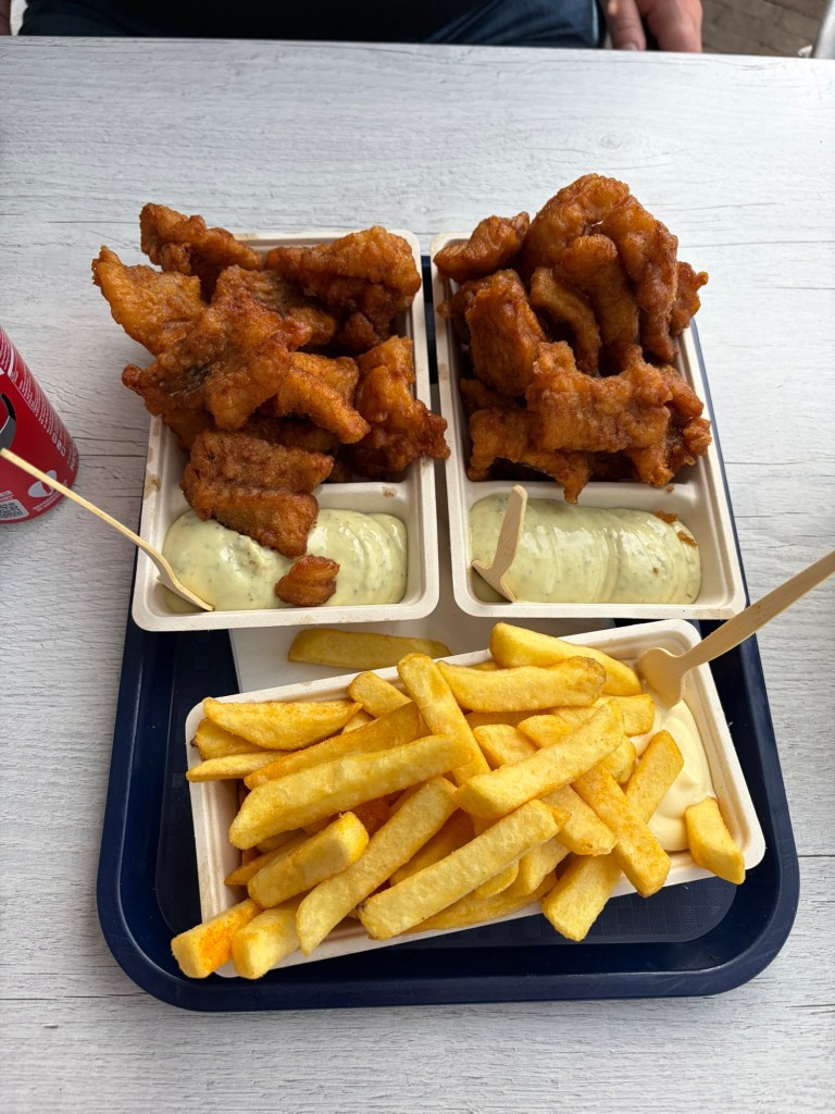 In Sloten gab’s dann super leckeren Kibbeling, wirklich sehr empfehlenswert. Zurück in Heeg ließen wir uns einen Latte Machiato sowie Kuchen schmecken.