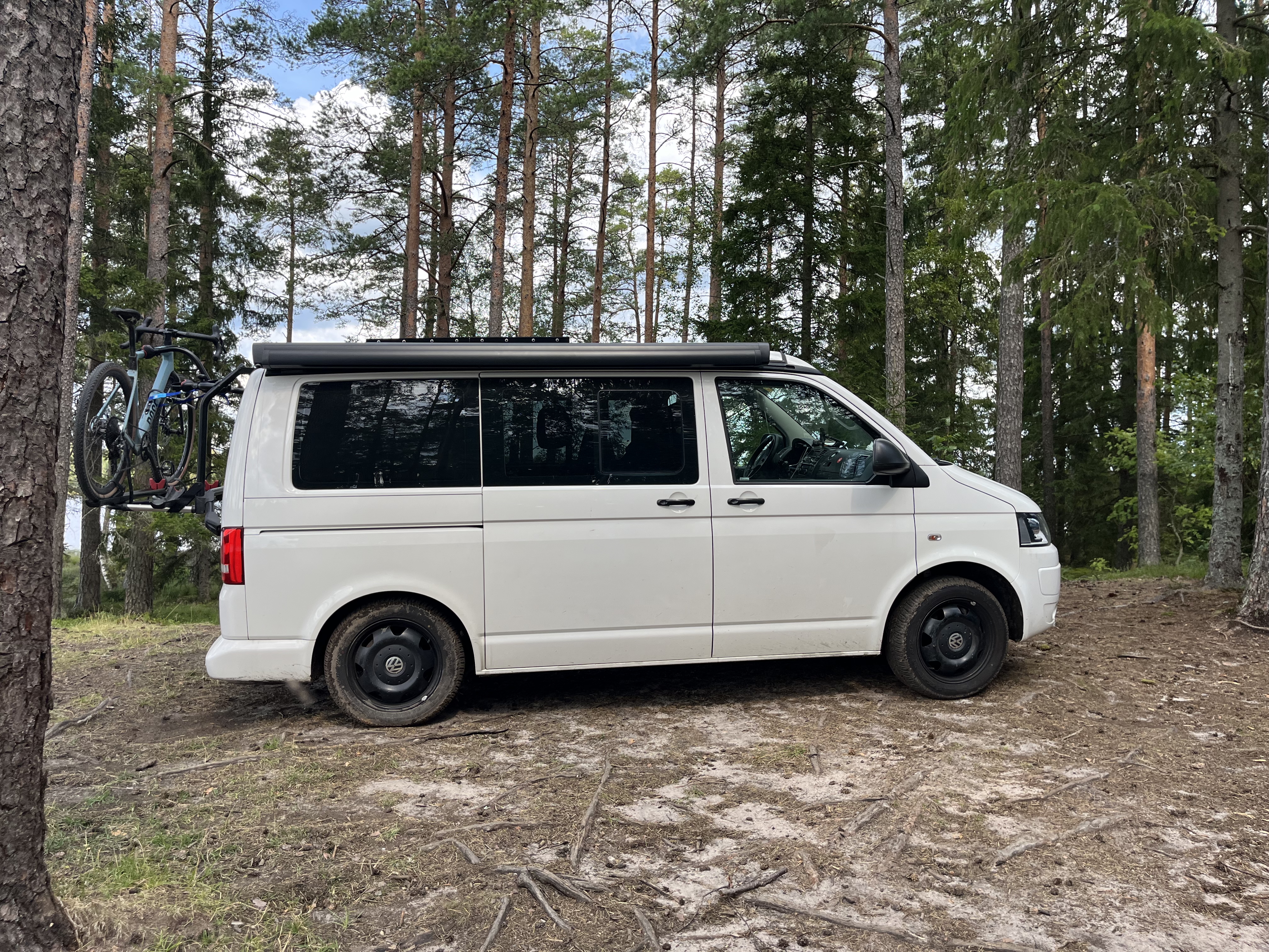 Bei dem Fahrzeug handelt es sich um einen VW T5 California Beach 4Motion aus dem Jahre 2011 mit gut 240.000km auf der Uhr. Ab Werk verfügt dieser Wagen bereits über ein mechanisches Aufstelldach und bietet so in Kombination mit der Rücksitzbank Schlafplätze für bis zu 4 Personen. Eine Aufbauelektrik (also die Verkabelung für Licht im Wohnraum und ein paar 12V-Steckdosen) ist ab Werk bereits vorhanden. Dank Standheizung ist auch das Heizen des Innenraums im Stand möglich, was auch bei kalten Temperaturen ein komfortables und warmes Wohn- bzw. Schlafzimmer ermöglicht. Eine Küche oder fließend Wasser ist jedoch von Anfang an nicht mit dabei gewesen.