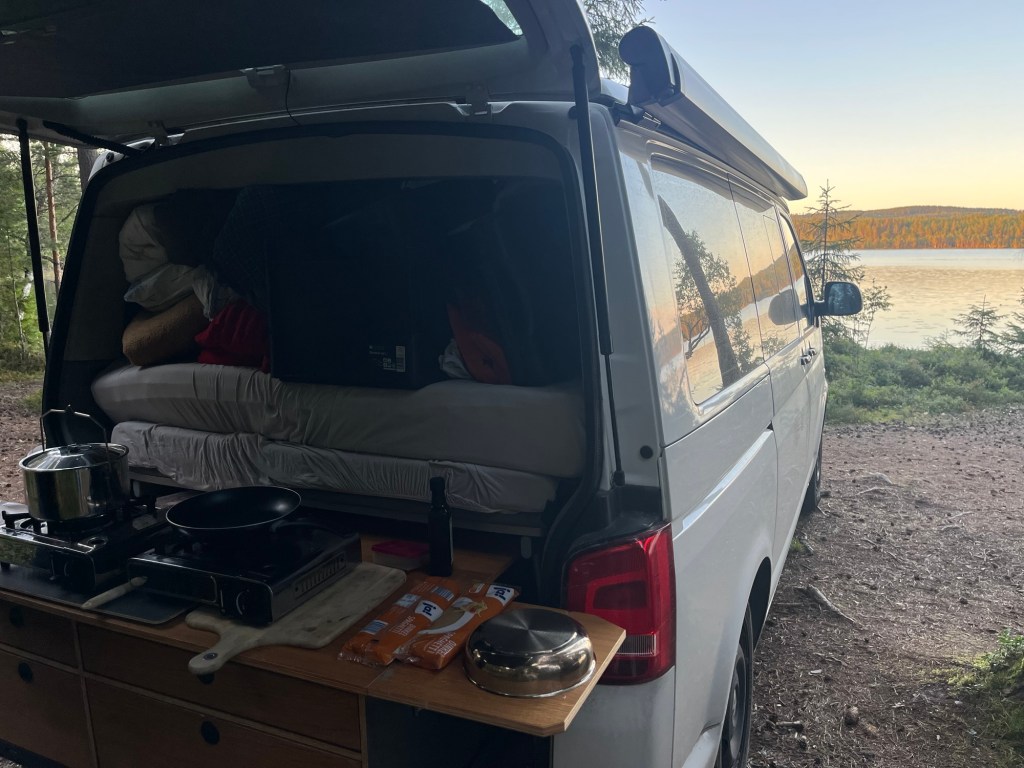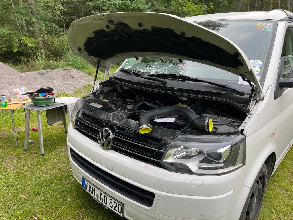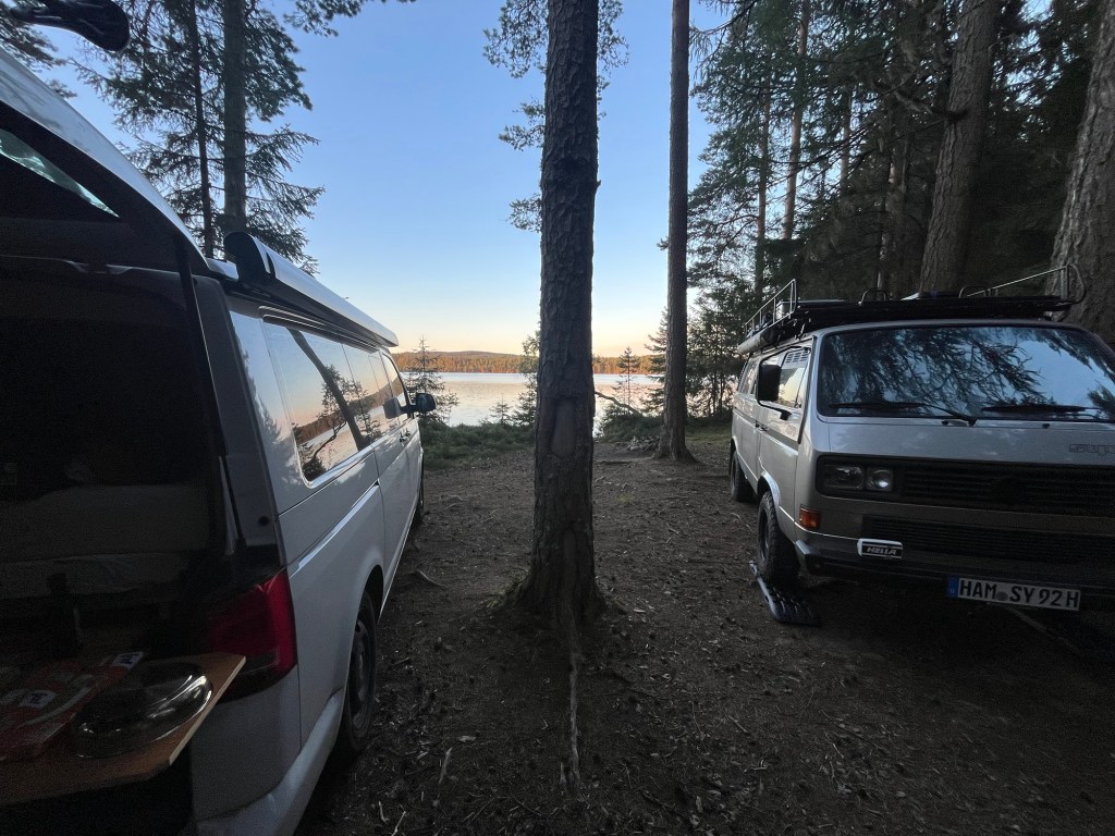 Gegen 09:30 Uhr frühstückten wir noch einmal alle gemeinsam vor den Bullis. Nachts hat’s geregnet und somit war alles ziemlich klamm. Ganz ungewohnt nach den letzten Tagen, in denen es ja fast nur Sonne gab.