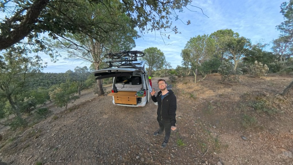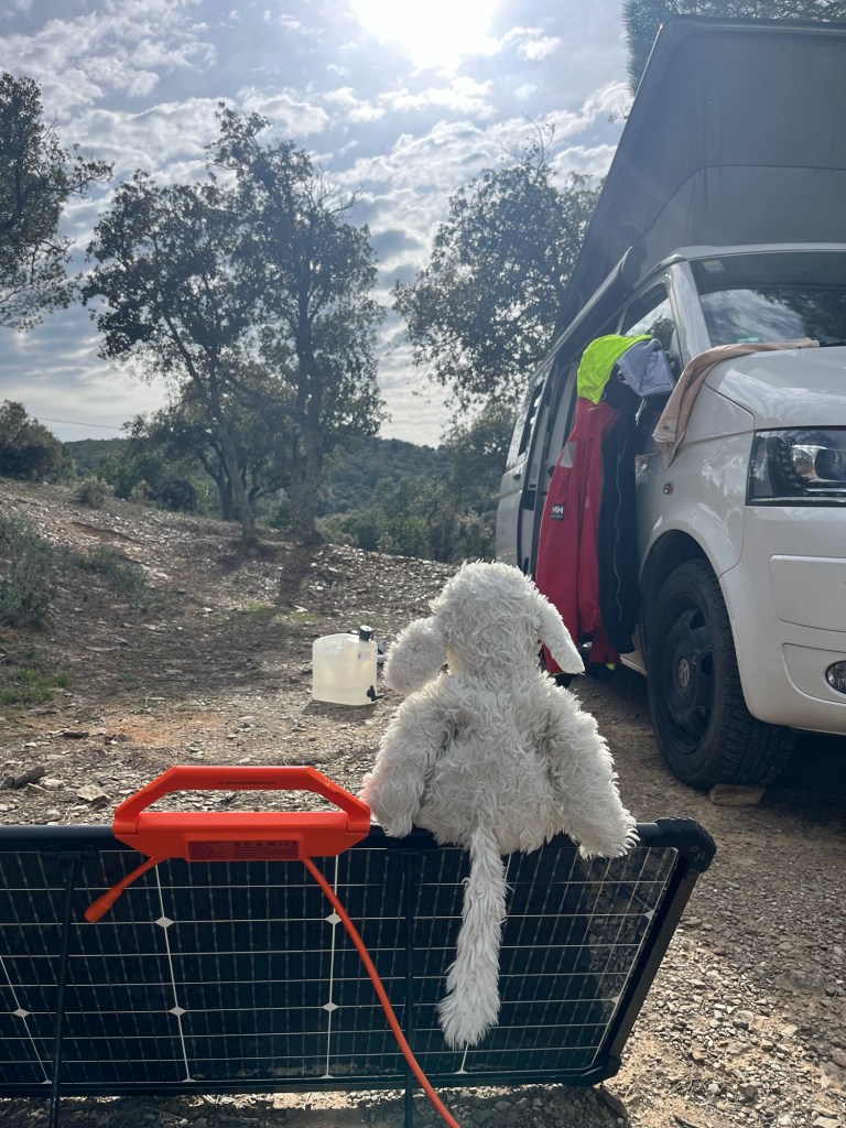 Anschließend stand zum zweiten Mal heute Spülen auf der Tagesordnung, gehört nunmal dazu. Dabei kam ich mit einem deutschen Pärchen aus Freiburg ins Gespräch. Die Beiden sind mit ihren Fahrrädern und Zelt unterwegs und fahren von Montpellier bis kurz vor Barcelona und wieder zurück. Sehr sportlich und bei den nächtlichen Temperaturen zur Zeit. Damit könnte man mich zu der Jahreszeit nicht wirklich begeistern. Zwar schlafe ich auch quasi im Zelt, aber eben nur nachts. Mein „Wohnzimmer“ kann ich entspannt auf über 20 Grad heizen und es hier so richtig gemütlich machen.