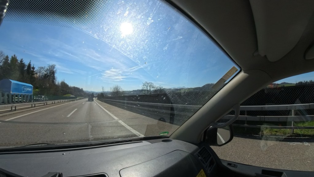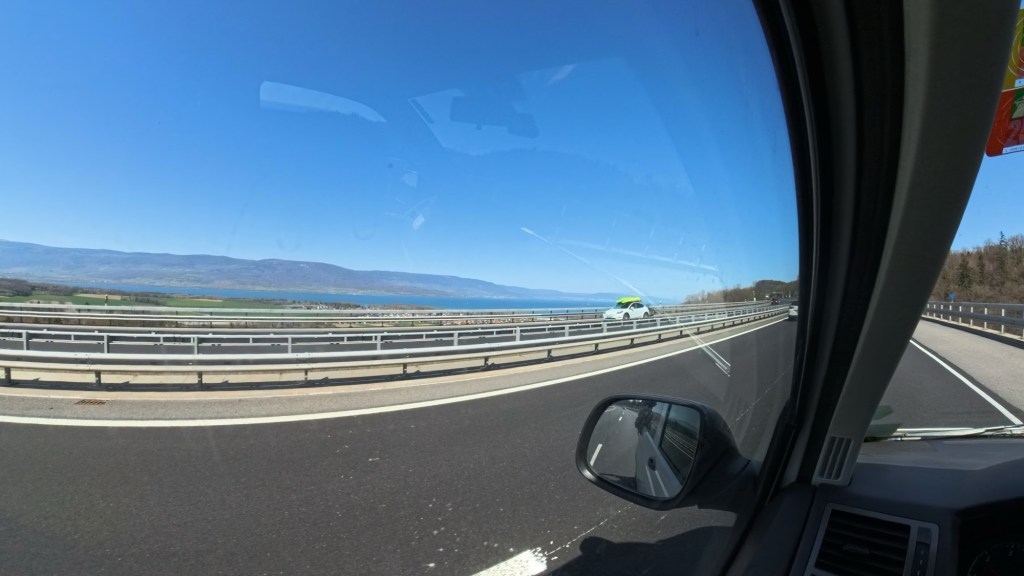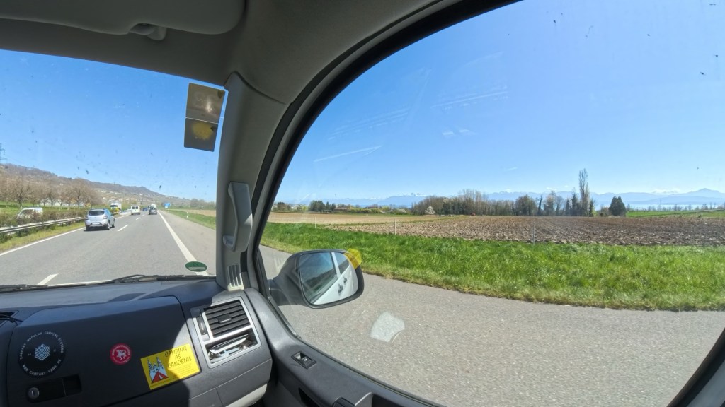 Irgendwann nach vielen Kurven kam ich in Genf an und war plötzlich in der Schweiz. Ich war auch echt froh, als die Straßen dann wieder größer wurden. An einer Tankstelle kaufte ich eine Vignette für die schweizerische Autobahn. Jetzt ist ein weiterer Aufkleber auf meiner Windschutzscheibe.
