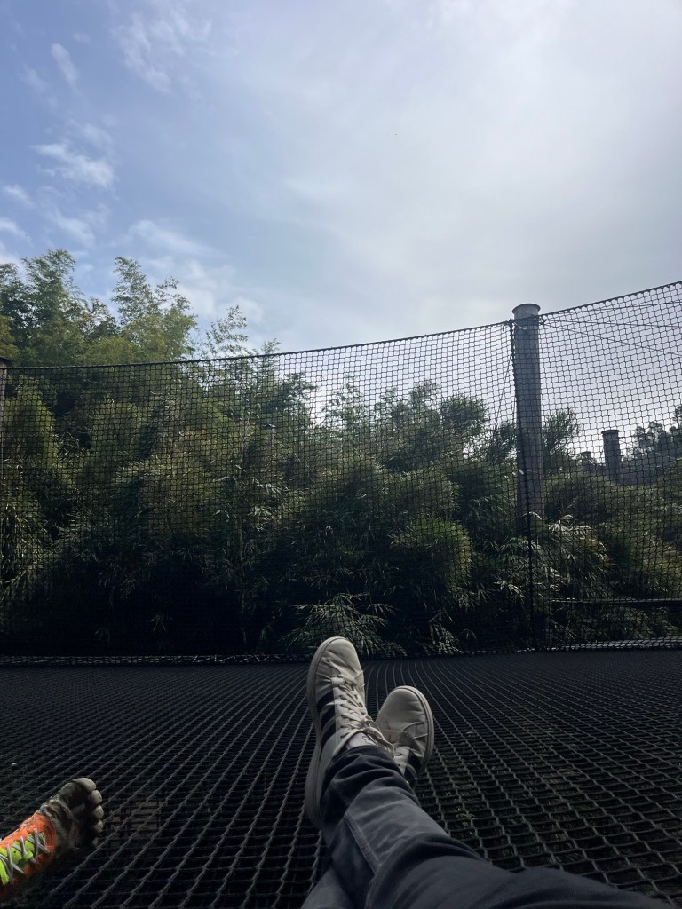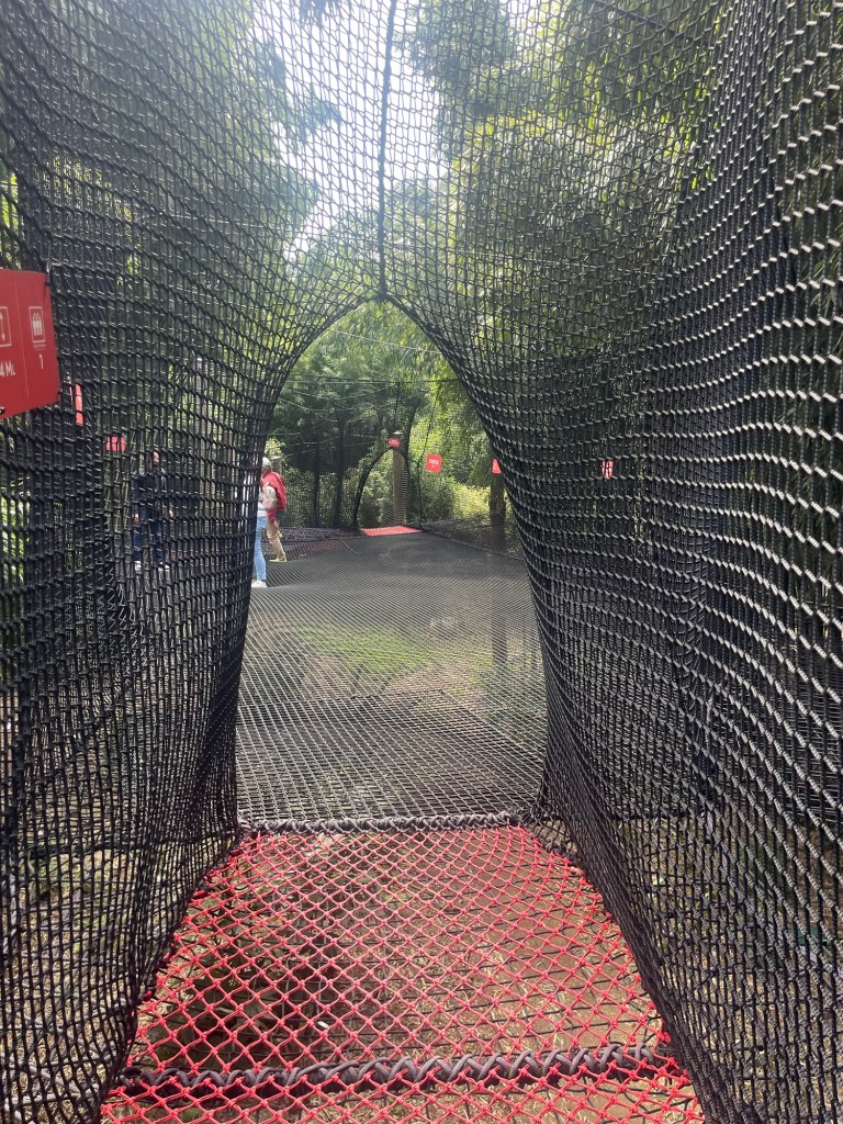 Eine sehr coole Attraktion ist ein begehbares Netz in den Bäumen in einigen Metern Höhe. Leider darf man hier nicht rennen oder springen, sonst wäre das wirklich wie ein Riesen großes Trampolin in den Wipfeln. Auf jeden Fall sehr sehr cool.