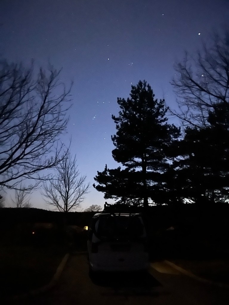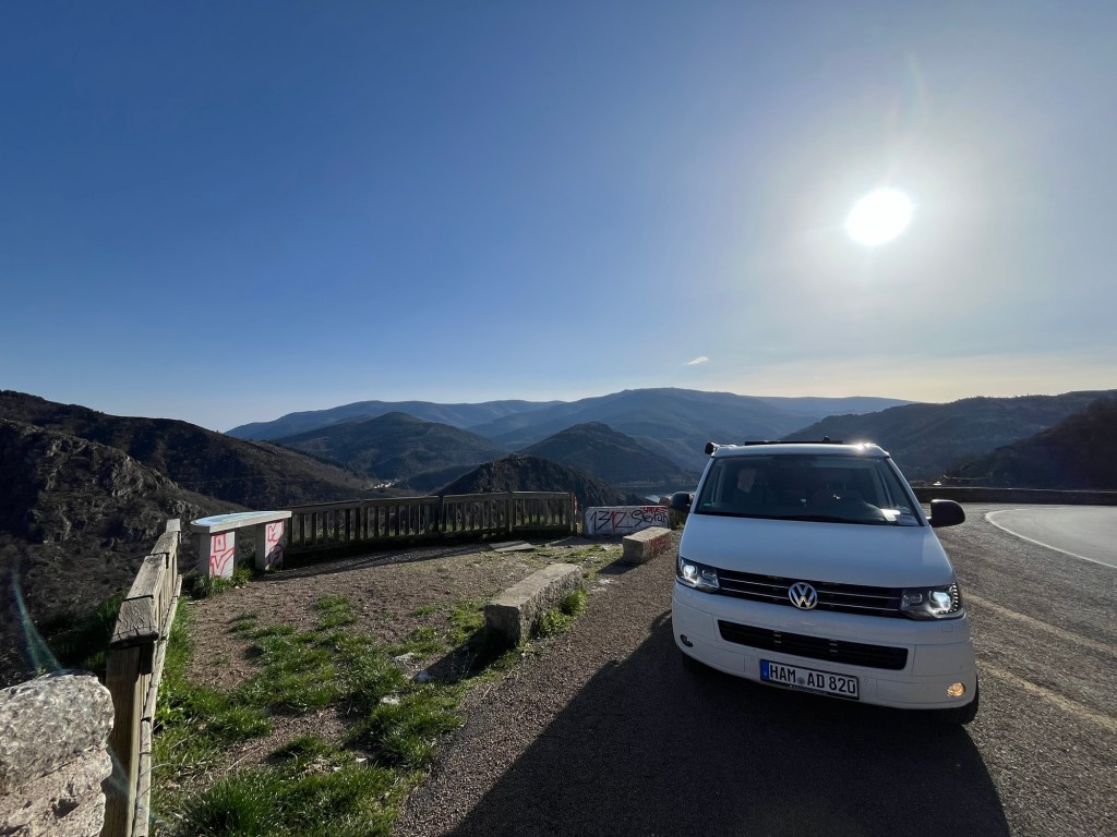 Gegen 20:00 Uhr hielt ich Ausschau nach einer Tankstelle, um mal wieder Diesel nachzutanken. Wie ja schon mal beschrieben fahre ich meistens nicht den kompletten Tank leer, falls man mal unerwartet irgendwo stehenbleiben muss oder mal die Bezahlung nicht funktioniert. In einem Ort fand ich eine Möglichkeit, tankte wieder voll und schaute erst dann nach einem möglichen Platz für die Nacht. Zufällig war nur knapp 15 Minuten ein kostenfreier WoMo Stellplatz, zu dem ich fuhr. Es ging nochmal ordentlich hoch in die Berge und jetzt stehe ich hier und kann sehr gut die Sterne sehen.