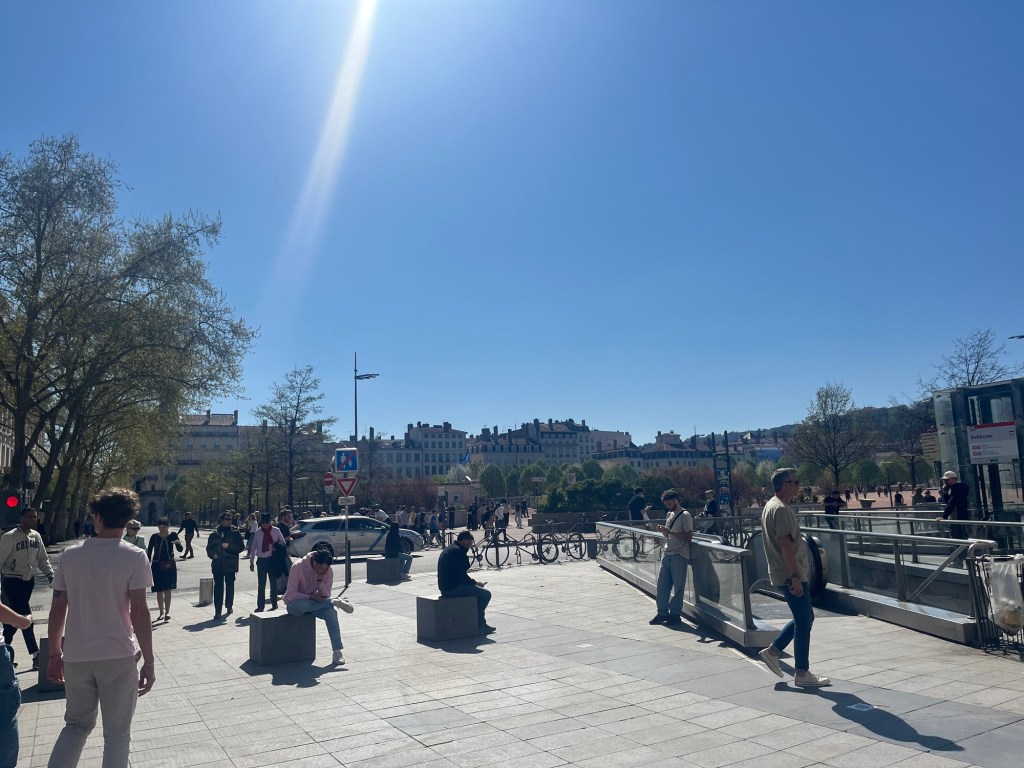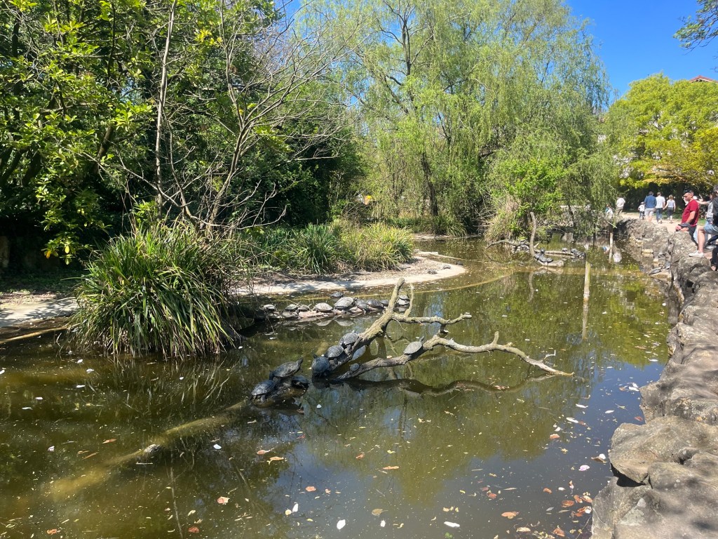 Nach einer guten Dreiviertelstunde erreichte ich einen Park, den „Parc De La Téte d‘Or, in dem wir uns dann zu viert getroffen haben. Hier gibt’s sehr viel Platz und bei dem schönen Wetter auch sehr viele Menschen. Wir waren also nicht die einzigen mit der Idee. Zu sehen gibts hier neben Schildkröten, Flamingos und Giraffen noch weitere Tiere, aber auch eine kleine Bimmelbahn, die durch den Park fährt.