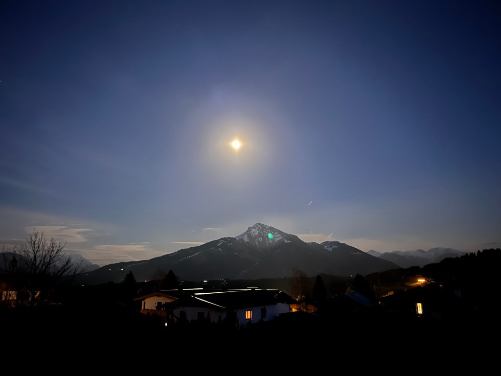 Es ist fast Vollmond, sodass alles gar nicht richtig dunkel ist. In Kombination mit den Bergen wirklich traumhaft.