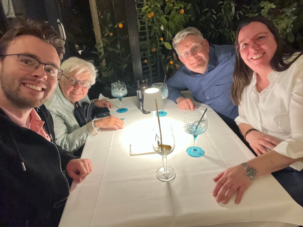 Gegen 19:15 Uhr kam ich bei Clemens und Moritz an und von da ging’s direkt weiter zur Pizzeria bei Oma um die Ecke. Sie wusste von meinem Überraschungsbesuch überhaupt nichts und hat auch nicht damit gerechnet, dass ich plötzlich in der Pizzeria am Tisch auftauche. Sie war echt überrascht und hat sich riesig gefreut. Die Überraschung ist definitiv geglückt.