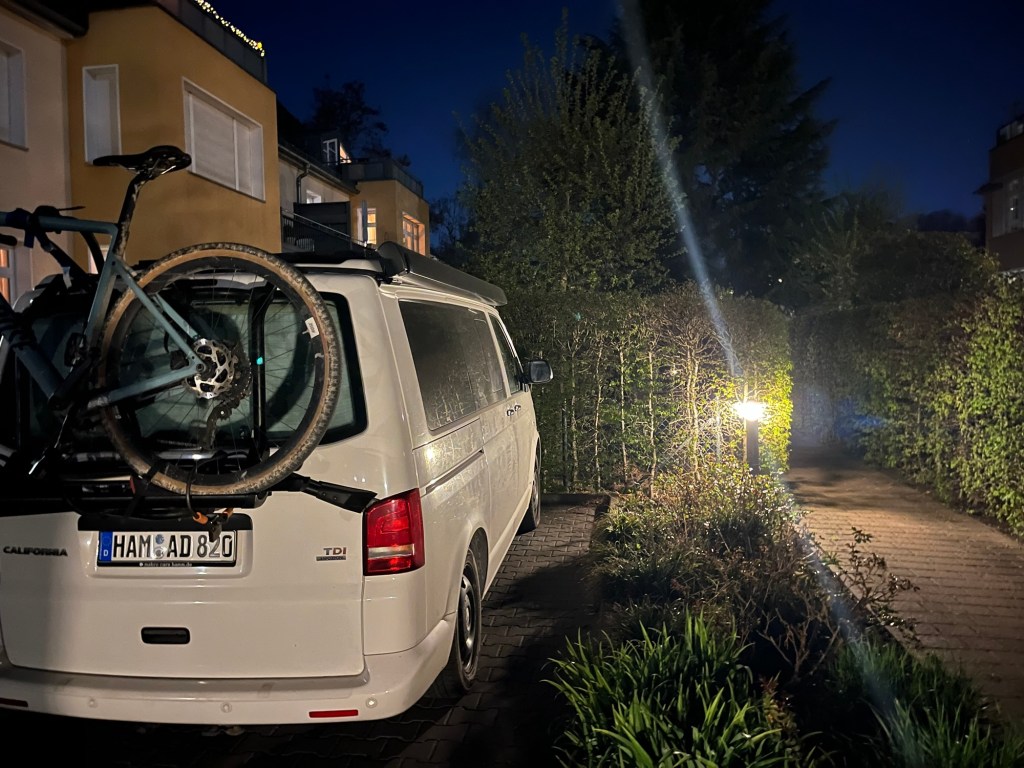 Nach dem Essen trennten sich unsere Wege wieder und ich trat den Rückweg Richtung Bulli wieder an. Es ging ganz schön den Berg hoch und es machte sich bei mir ein Halskratzen bemerkbar und ich wurde etwas schlapp, und schob daraufhin das Rad einige Zeit den Berg hoch. Mal gucken, ob ich mir ne Erkältung eingefangen habe oder es irgendwelche Pollen sind, die hier rumfliegen. Mal gucken… Ich habe es mir jedenfalls schon im Bulli gemütlich gemacht und werde gleich auch schlafen gehen.